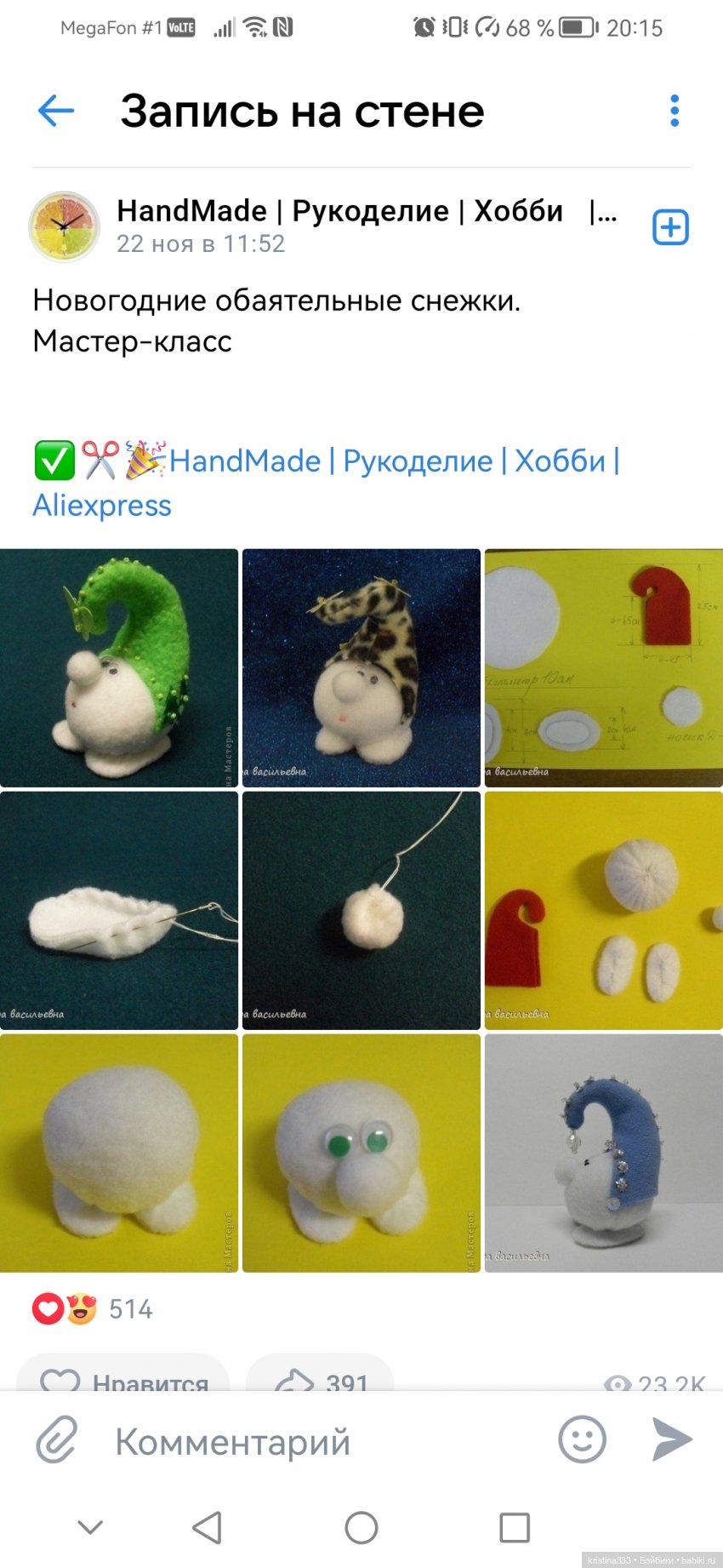 Я успела поучаствовать в марафоне от Мими Ду и сшила много снеговичков. Всего 5, двух подарила. Был ещё в салатовой расцветке. Стоят на полочке и радуют меня))