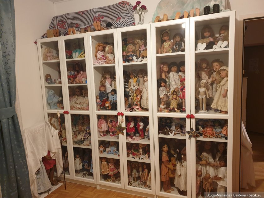 В этих моих витринах в комфортом можно разместить 60-65 кукол формата 1/6. При большем количестве это уже будет выглядеть не витриной. Размер каждого из трех отсеков витрины 85х60х25. Как сейчас расположены куклы внутри можно посмотреть здесь babiki.ru/blog/boltalka/343842.html недавно топик делала.