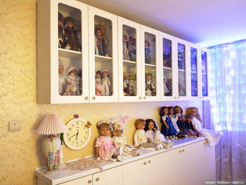 Вот так выглядит мой кукольный шкаф, расположен в спальне, напротив большой кровати… Занимает мало места, не бросается в глаза, лёгкий и незаметный… Я воздушный знак, поэтому люблю белый цвет в интерьере…