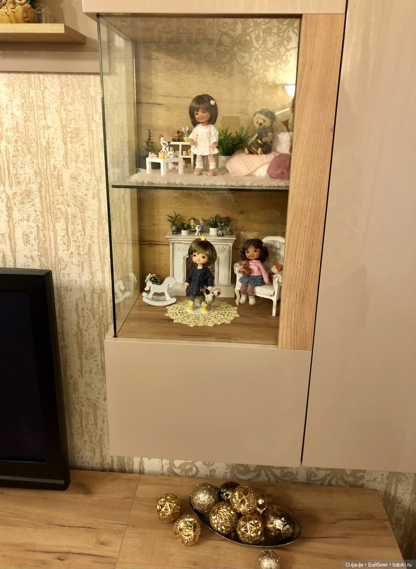 Р.s.в комнату с куклами солнце не попадает, так как у нас частный дом и на окнах я поставила наружные жалюзи что бы защитить своих любимок.