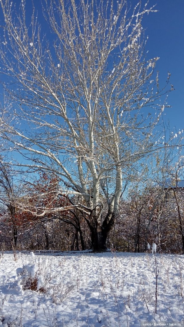 Вот на днях. Совсем без листьев. И это юг Казахстана в октябре. Бр-р-р-р. Сегодня уже все растаяло и +19.