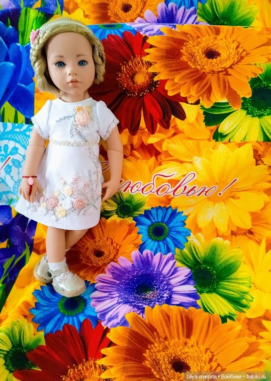 Дома разложила на диване чисто полюбоваться) и тут меня осенило--это ж готовый фотофон для моих девчонок) Ухватила Софию) приставила её к ткани и ОГО)