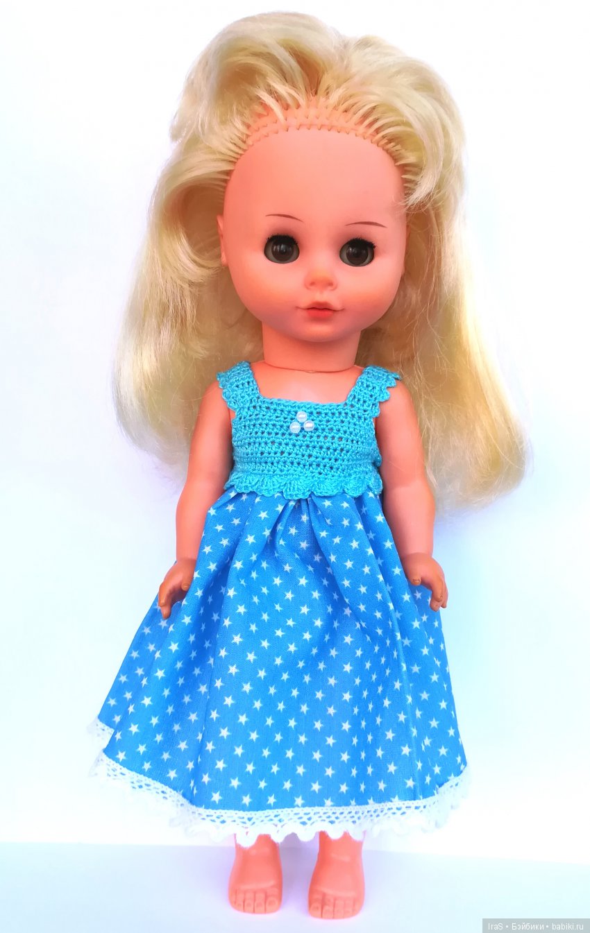 Вот здесь она в родной одежде, а вот я сваязала ей наряд новый недавно: