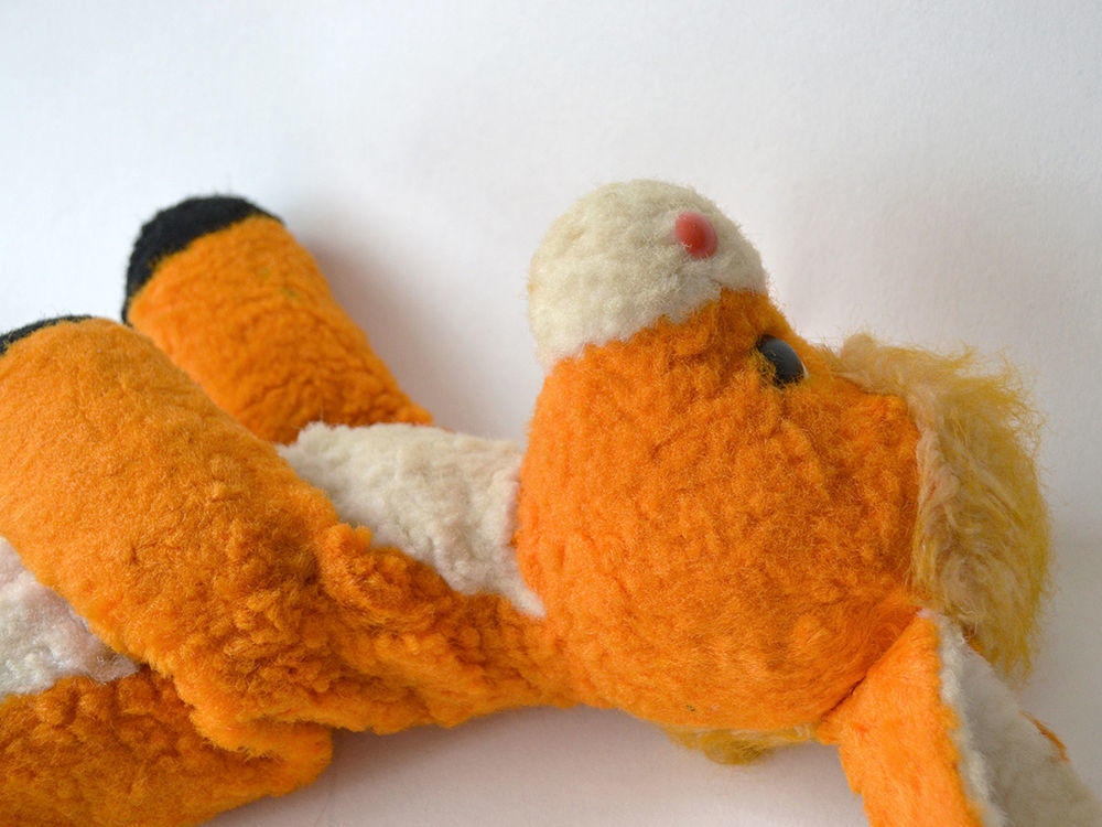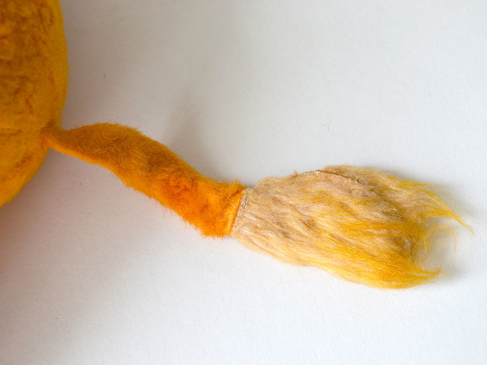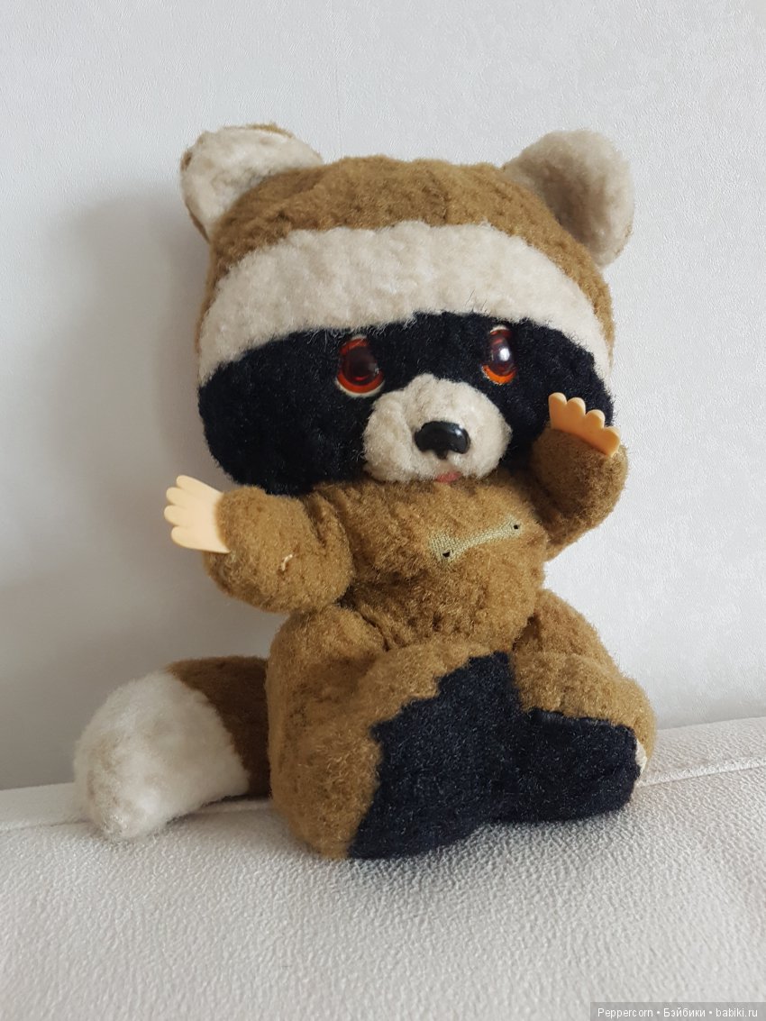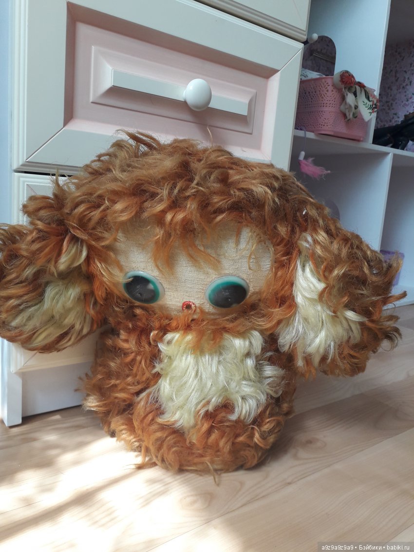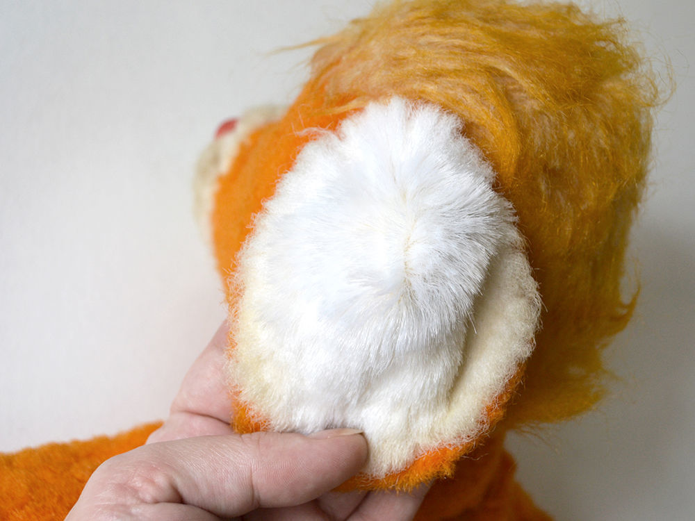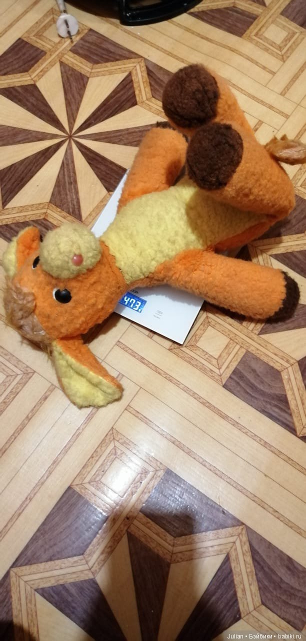 Состояние у игрушки хорошее. Плюш без проплешин, в некоторых местах даже не свалявшийся. Цвет насыщенный, только многолетняя пыль