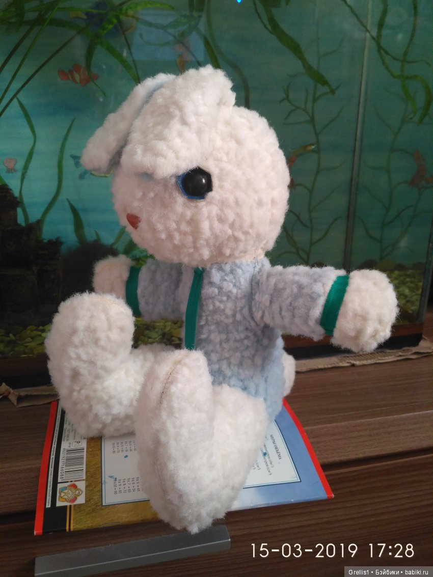 Только посмотрите какой красавец жил все это время в нашей семье и почти сохранился! Нос куда то только пропал. Был пластмассовый большой черный треугольной формы нос. Но он лежал последнее время у нас в гараже а к папе часто приходили товарищи иногда тунеядцы может и обидели мишку. Медведю почти сорок лет, а может не почти а уже! Его мне подарили на крестины мои крестные родители, когда я только родилась и есть даже фото где я в конверте на улице в пеленках меня держит на руках крестная, и крестные стоят рядом и друзья и держат этого мишку! Медведь был больше меня, а потом я помню он всегда лежал у меня в комнате на полу и все кто приходил в гости удивлялись а почему он синий?..