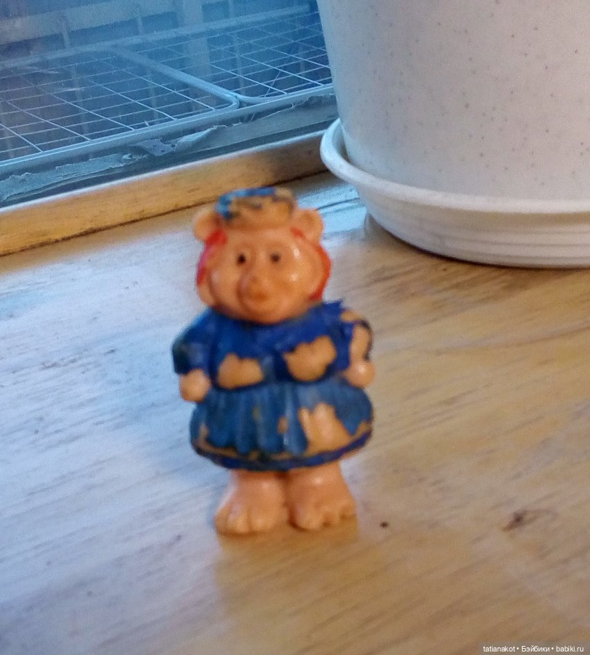 Это уже из платизоля наверное, сохранились две, еще была свинка с таким же цветочком и волосатый леший, мы его Дядюшка Ау звали. Вот их ищу, но пока нет…