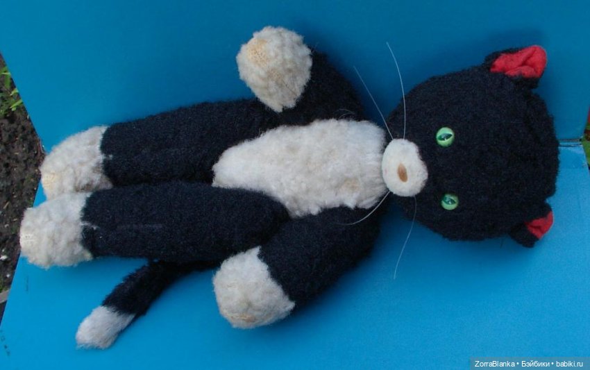 А я ищу кота. Однажды мы с папой приехали в новый тогда в Москве магазин Дом Игрушки на Якиманке, и папа сказал, чтобы я выбрала то, что хочу. Я выбрала этого кота. Кажется, папа был несколько разочарован моим выбором.)