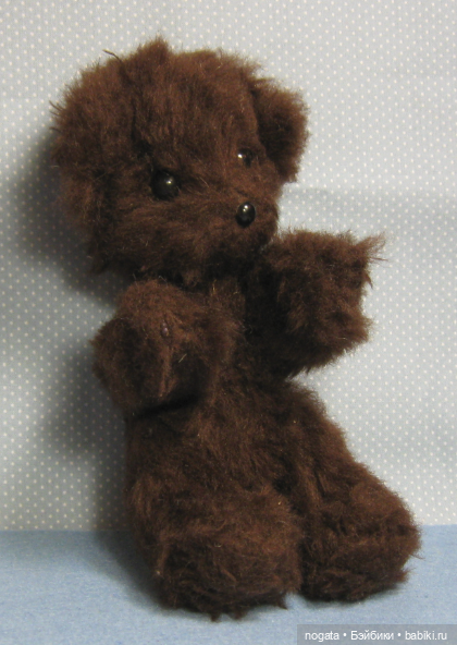 Он и есть московский. Московской артели по изготовлению игрушек. Такого точно мишку с информацией о производителе я когда-то видела на выставке в Москве. Встречала старенькие фото таких мишек темно-бурого, светло-бурого, белого, оранжевого цветов. Модель одна и та же. Но и материал отличался: плюш обычный, плюш с ворсом подлиннее, плюш шелковистый и даже плотная байка. С язычком и без. И глазки у одних просто черные, а у других с более живые — с белком.