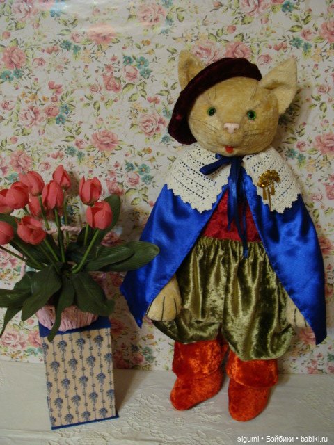 И вторая история. Очень люблю кошек. Захотелось кота, старого, советского, но они редкие, и цены на них в хорошем состоянии высокие. Ну, думаю, хотя бы реплику. И что — в течение нескольких дней появляется здесь, на бейбиках, совершенно чудесный кот, и вот он у меня! Фото куклы и кота.