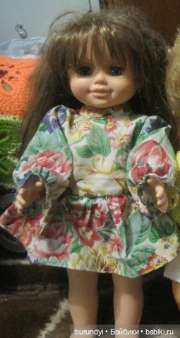 Живёт у нас бабушка на 5 этаже, у неё дочь и взрослая внучка. Кукла была куплена ею для дочки. Та выросла, затем играла внучка. А потом кукла стала не нужна. Она тихо сидела на шкафу и напоминала бабушке о юных годах дочери и внучки. Но тут начался ремонт и бабушку заставили её выбросить как хлам. Она плакала, но на помойку не смогла выбросить. Она знала что у меня есть куклы, на окне стояла китайская фарфорка и её видно из окна. К тому же есть дочка. Предложить старую куклу мне, ей было стыдно, и она подкинула её мне под дверь, на помойку выкинуть свои воспоминания она не смогла, дома же их считали хламом. Вот такая грустная история с хорошим концом.