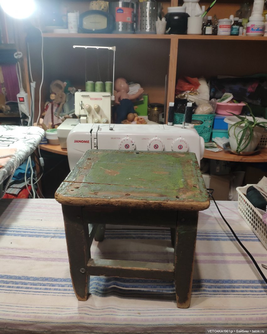 Одна сравнительно молодая, ей лет 30, а вот второй уже к 50-ти)) молодая табуретка из нашей старой квартиры, где мы жили всей своей большой семьёй, все вместе) мама, папа, бабушка и нас 4-ро детей.