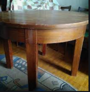 А у моей бабушки был большой круглый стол, когда он раскладывался, то оказывался овальным! И когда я была маленькая, мы с братом делали шалаш под столом и там играли!