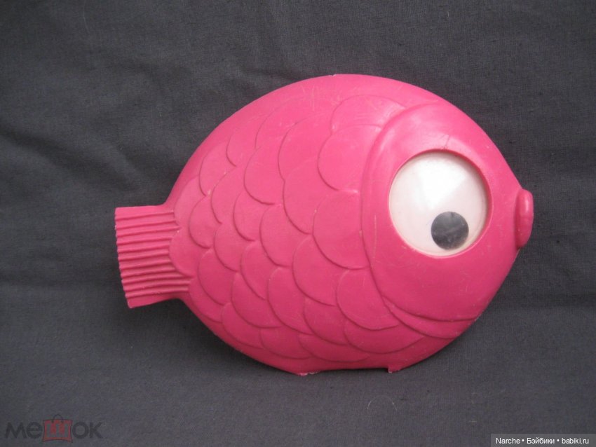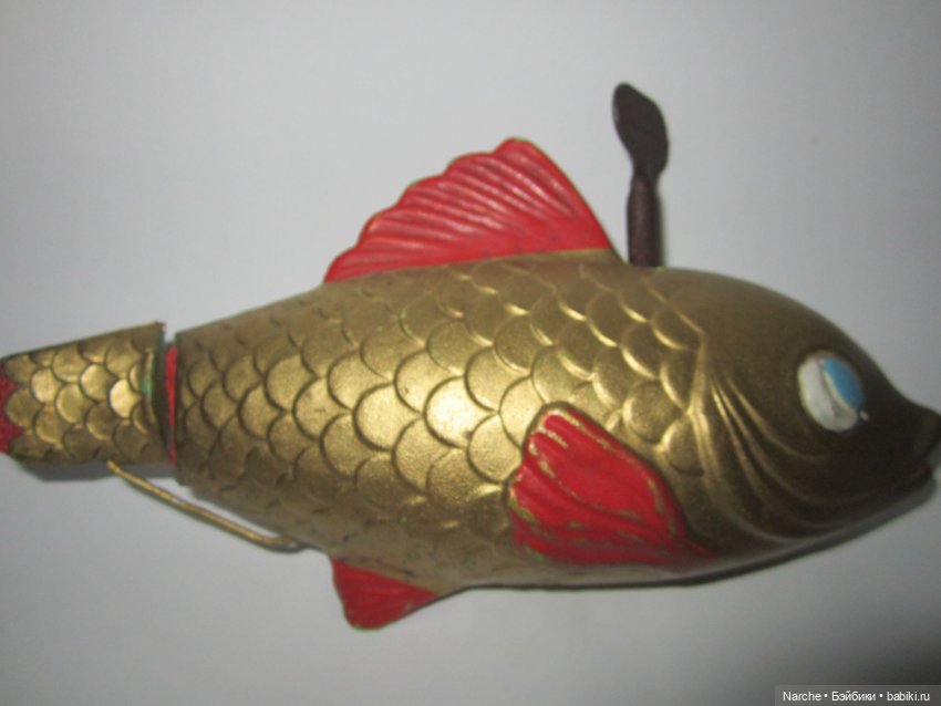 Я нашла фото подобной рыбки, на та пластмассовая. Наверное, мои были более ранние. Может, какая пробная партия была… Абсурд же, металлические плавающие игрушки!