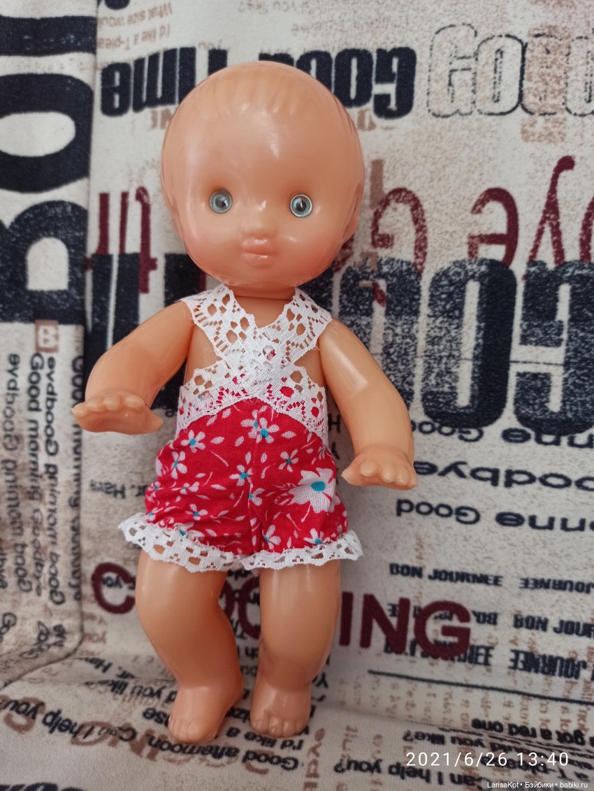 В красном — малышка)) С жёлтыми волосиками. И такая же в белом. Но вот немного отличается от той, что я помню)))