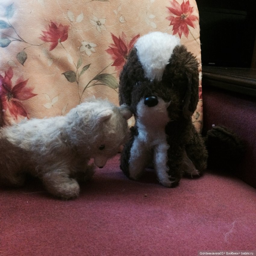 На 1е сентября мне подарили медведя, книжку «Винни Пух и все, все, все», ну и традиционно «Подарок первокласснику»-огроооооомную коробищу красного цвета с разными канцелярскими нужностями.Радости и тем паче восторга ничего не вызвало.Читать сама не любила, канцтовары(хоть и в красивой коробке)тоже равнодушно приняла, мишку, такого огромного, тяжёлого, неуклюжего, рычащего, тоже ну совсем я не хотела… Я ждала куклу… их всегда было мало(ну прямо, как сейчас😉, хоть и много)… А тут… Но, затаив обиду внутри, виду не подала, девочка я была воспитанная… Не знаю почему, мишу назвала сразу Янтарик.Много он повидал на своём жизненном пути: сидел на тахте рядом в Сонненбергами, иногда в него играла, но редко.С ним выросла и младшая сестра(фото покажу), и внучки… в боях с внуками были утеряны оба глаза, он давно перестал рычать, смирившись со своей долей… Но вот, когда,15ть лет назад им стал играть в футбол старший внук, тогда его пришлось спасать! Я, как смогла, слегка перенабила потуже его опилками, сняла с него синий бант, чуть приодела и… он наконец-то занял своё достойное ветеранское место в моей комнате среди моей коллекции!)