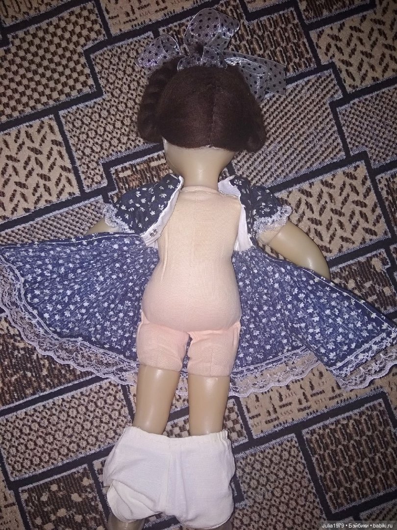 Кукла Анюта фабрика игрушек «Звёздочка» г. Москва выпуск 60-е г. рост 34см. Куколка довольно редкая и сохранилась неплохо учитывая её возраст. Тельце хоть уже и выцветшее, но без посторонних запахов, сохранились даже родные туфельки и панталончики. Продавала куколку бабулька, сказала, что эта куколка у неё была с самого детства. Теперь Анютка живёт в нашей семье, мейк я ей восстановила, новый паричок и платьице в винтажном стиле.