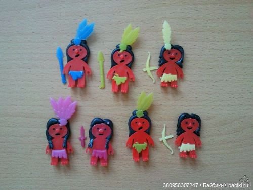 Интересно кто их выпускал в СССР, никакой информации не нашёл, только чуть-чуть фото, многие таких не знают и не видели, в детстве покупал сам, в 5 — 11 лет в Детском мире, в яичке пластмассовом лежал один разобранный индеец или неандерталец в разобранном виде с бумажечкой, сколько они стоили не помню, но видимо не дорого, так как моих карманных денюжек на них, мне хватало, так как покупал в детстве не один раз.