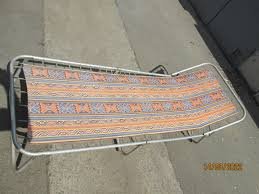 Изначально на раскладушке была ткань, похожая на шёлк. Она быстро порвалась. Мы с бабушкой ее подштопывали какое-то время, потом, когда я начала шить сама (лет 7-8 мне было), я сшила новую, как умела: