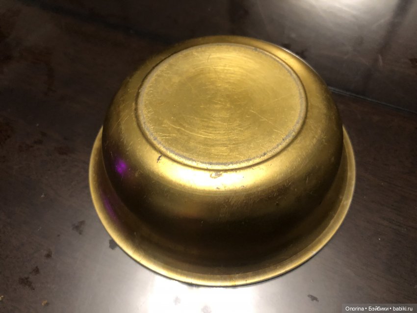 Мисочка изнутри совсем выцвела и появились пятна: бабушка использовала ее как мыльницу. А снизу видно, какой цвет раньше был.