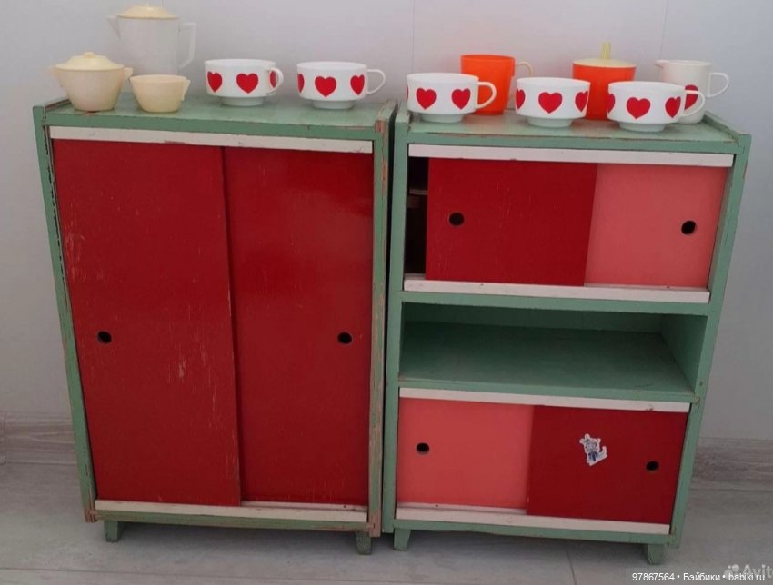 Мебели именно такой кукольной у меня не было, была другая. А вот реальный шкаф-буфет такой кухонный есть до сих пор. В квартире у бабушки)