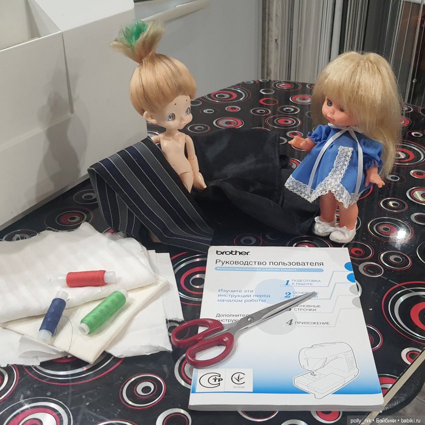 В этом топике мы выкладываем фотографию куклы с игрушкой или аксессуаром, а рядом раскроенные, сметанные, сшитые (у кого как) детали костюма.