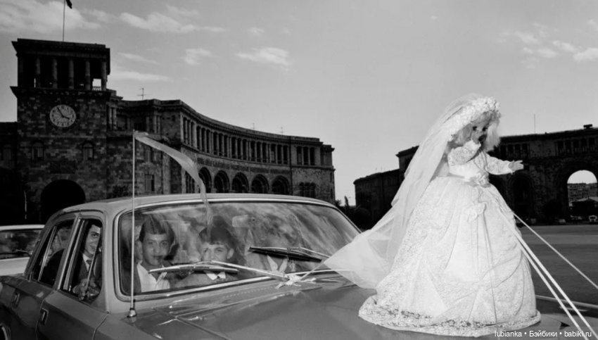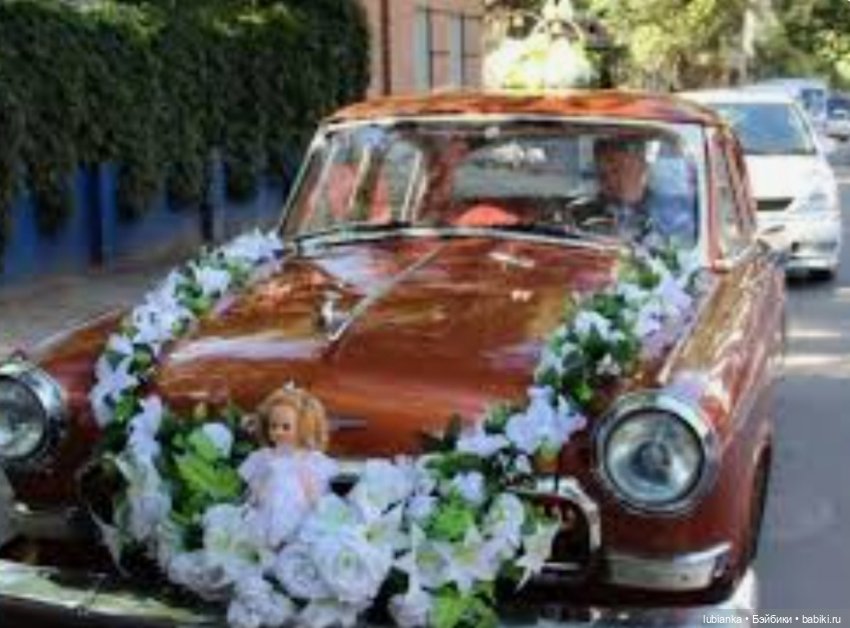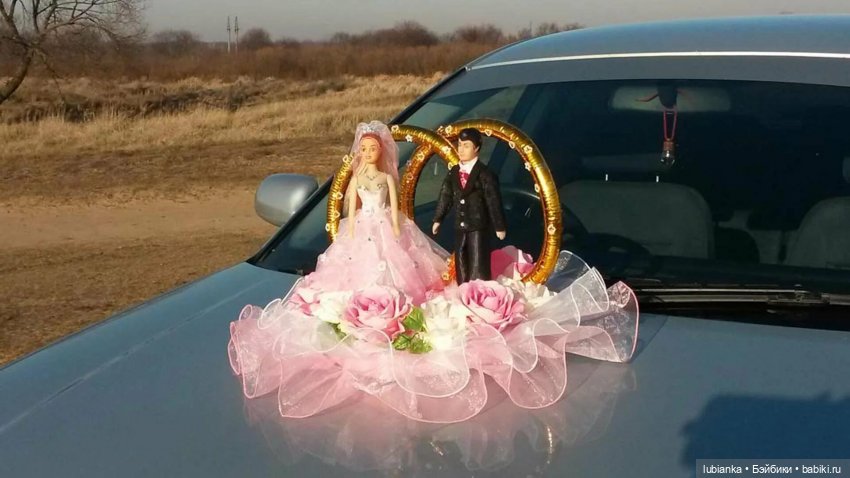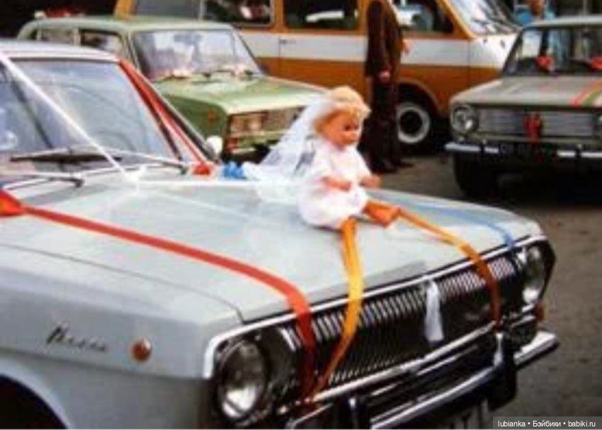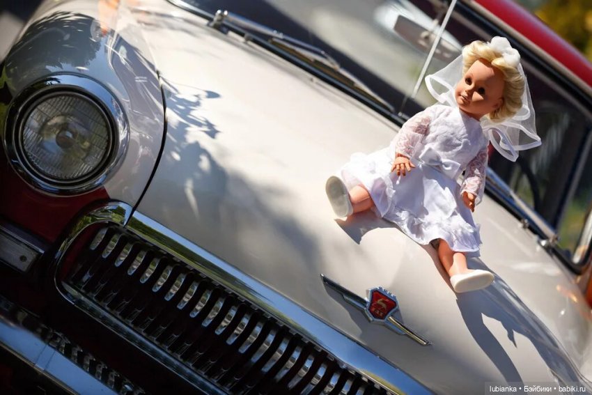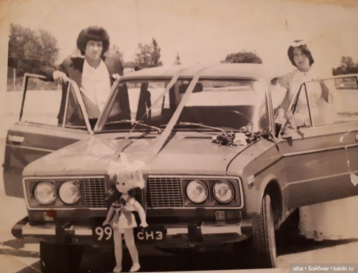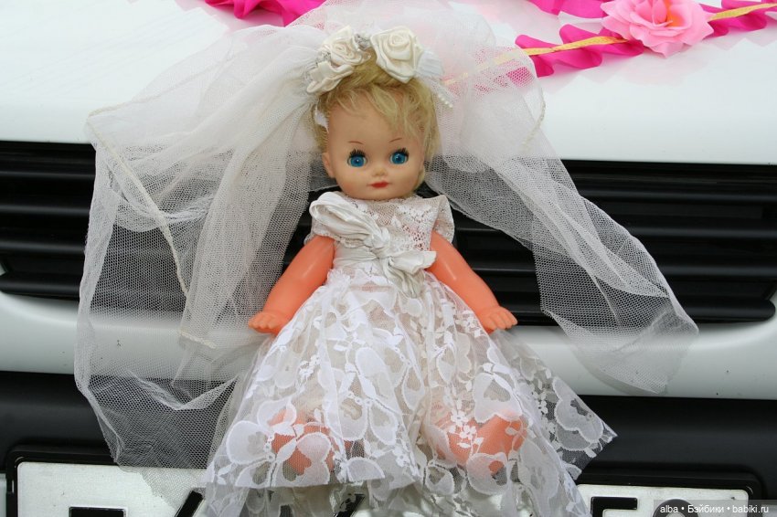 У меня с детства была мечта чтоб на свадебной машине у нас сидела именно кукла. Кукол я очень любила с детства, было у меня их очень много, но к свадьбе подходящих не осталось. Меня выручила подруга, одолжила свою, платье было сшито в срочном порялке.На момент нашей свадьбы эта традиция была уже не особо модная, начиналась пора цветов, как украшений, меня это мало волновало и на нашей машине гордо восседала большая советская кукла.Кстати не кукла не машина от этого никак не пострадали, и после свадьбы благополучно вернулись к своим владельцам.