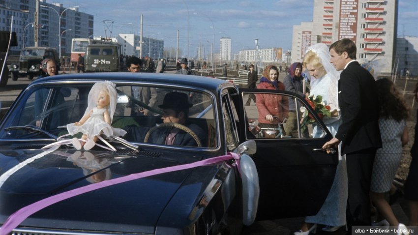 Сегодня случайно увидела в интернете фото советской свадьбы и куклы-невесты на машине.Тема, как пить дать, не раз освещалась тут, но мне почему-то всегда было жаль этих кукол… Я сама родом из СССР и тоже выходила замуж в 70е… Но и мысли никогда не было усадить на капот свадебной машины куклу(мишку, зайку и тд)… Я считала это дурным вкусом.А оказывается, традиция то уходит в глубину веков и это были вроде бы как обереги в нашей языческой стране… Свадебных кукол-неразлучников, сделанных из лоскутков ткани, закрепляли на передней части повозки молодых.У кукол была общая рука, в неё вставлялся каркас из деревянной палочки, только не из осины и не из ольхи(тк эти деревья символизировали нечистую силу).После проведения свадебных обрядов кукол этих усаживали в красном углу избы и с появлением детишек на общую руку привязывали пучки белых хлопковых ниток по количеству детей в семье.