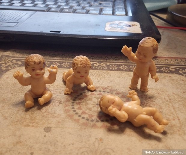 Интернет поскромничал в плане информации. Рассказал, что малыши из мягкой резины продавались в «Союзпечати», набор из 4 штук выпускался Санкт-Петербургской фабрикой «Оритет» в 90-х гг. Мальчики высотой 4,5 см, девочки — 4 см.