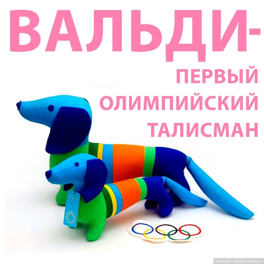 Я стала искать информацию, отталкиваясь от Вальди, и выяснила, что это очень распространённое имя для такс в Германии, видимо, поэтому олимпийский талисман его получил. Правда, сам талисман был другим — синяя собака в полосатой майке. Вот такую картинку нашла в интернете.