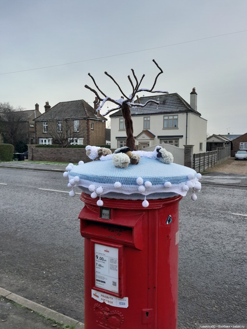 А когда возвращались домой, то увидели новую вязанную шапочку на почтовом ящике.