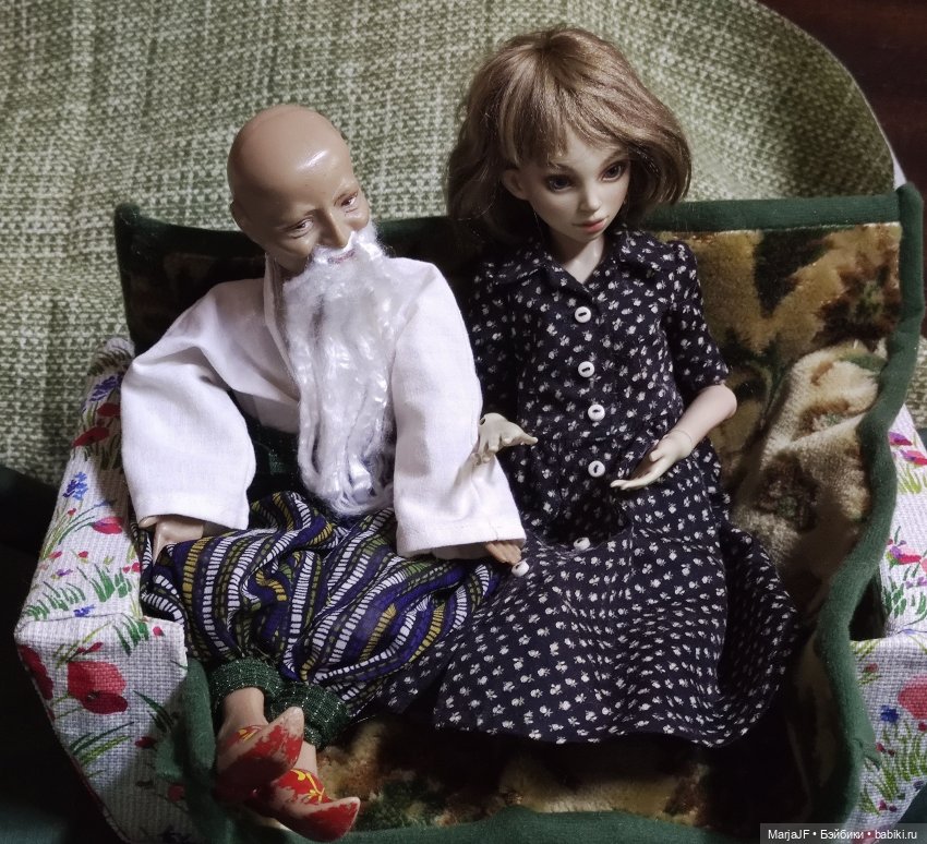 В детстве я о таком мечтала. У подружки был, на стене висел. У нее, вообще, игрушки были все, как на подбор, Солоха была, этой же фабрики, Золушки ивановские… А у меня Хоттабыча так и не случилось. Когда- то у нас тут продавали, но и состояние так себе, и дороговато, да и направленность коллекции тогда у меня другая была. А теперь не продают… Но я верю в то, что все желанные куклы нас рано или поздно находят.