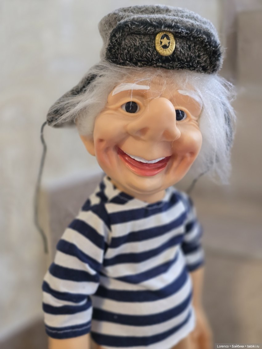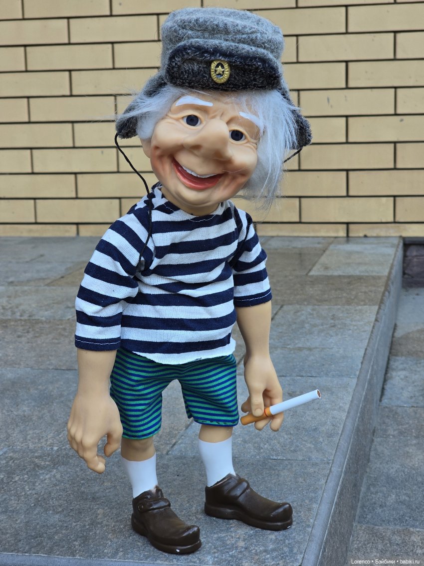 Дед просто очарователен! Обаятельный персонаж, напомнил мне Олега Попова. Хотела нарядить его в аутфиты от солдата..., но они оказались немного малы. Из всего гардероба подошла только тельняшка, т.к. она трикотажная и была свободного кроя.