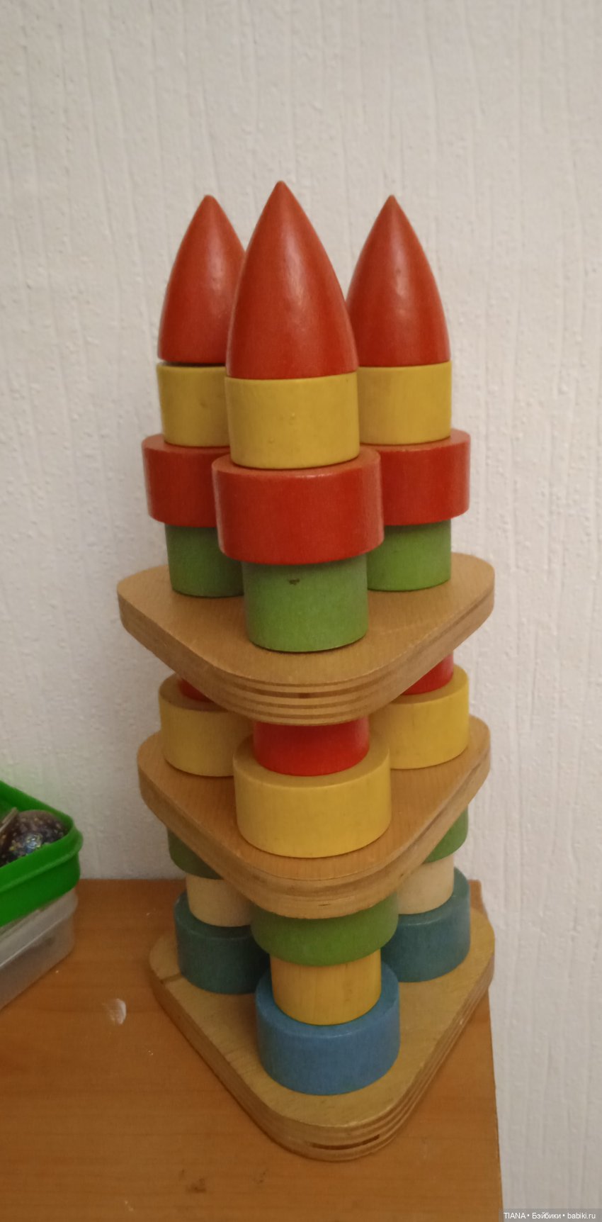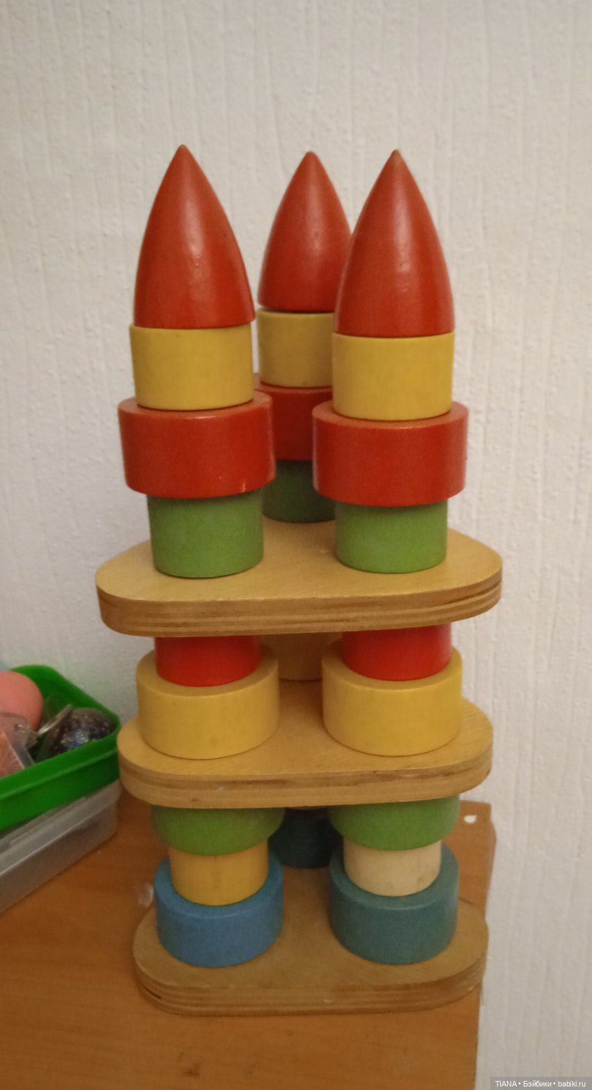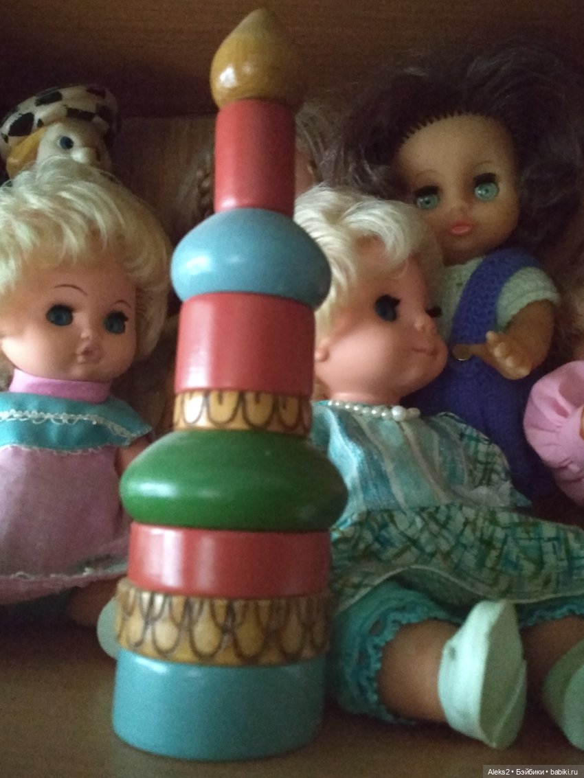 Пирамидки из детства, к сожалению, не сохранились. Были в форме деревянных и пластмассовых колечек, которые нанизывались на большой стержень, а наверху был просто шарик.
