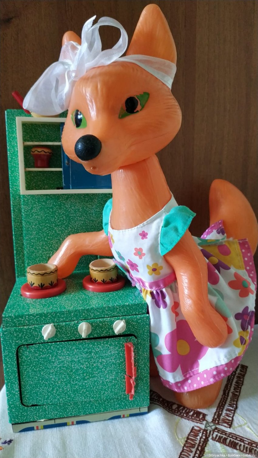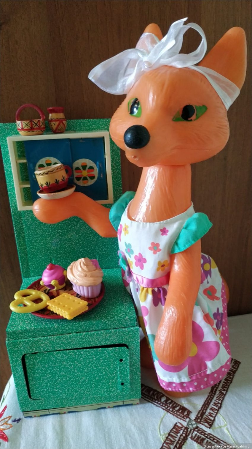 Лисонька очень органично вписалась в кухонный быт. Фартучек у нас есть, лисонька показывалась в нём в предыдущей публикации, когда только знакомилась с читателями.