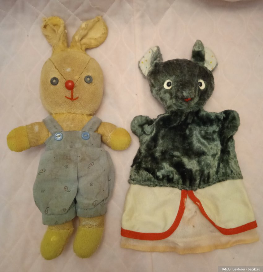 Мишки из моего детства, к сожалению, не сохранились. Один вернулся. А второго никак не могу найти. Встречаю похожих, но те то. А сохранились из детства две собачки, зайка и мышка.