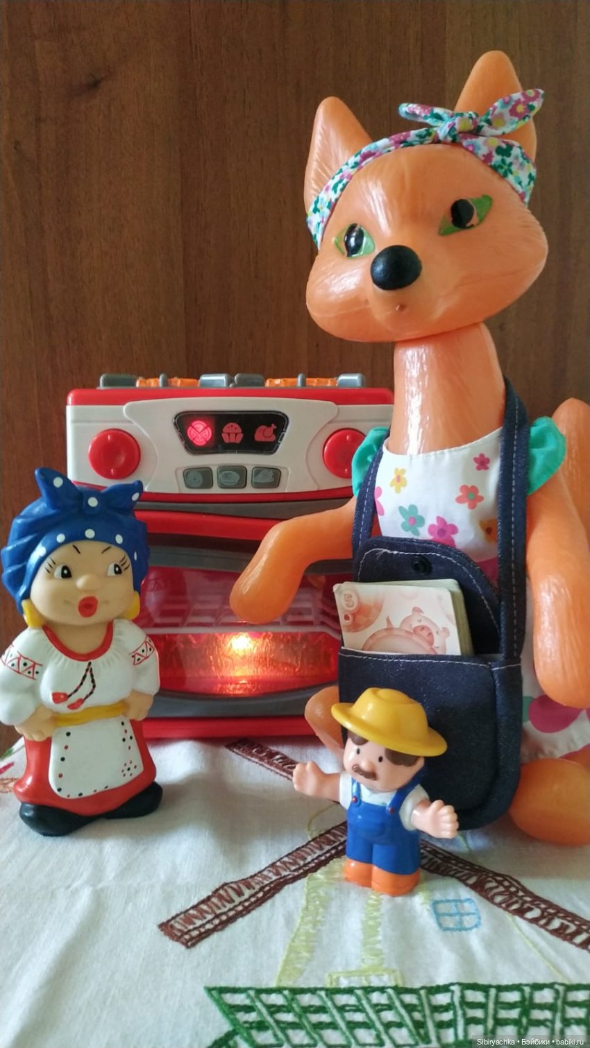Кот, лиса и баба Груня посовещались и озвучили продавцу свой выбор. Он им описал выбранную модель во всех подробностях. Наши герои рассмотрели плиту со всех сторон.