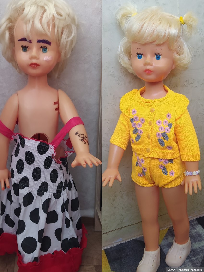 Ко мне в этом году тоже Нина попала, мама ее в ноябре прошлого года с детской площадки забрала. После ремонта Нину увидела дочка, заявила, что это теперь её Катя. Одели быстро в то, что нашли. К моему удивлению, дочка считает Катю очень красивой и доброй, носит по дому, играет с ней, примеряет на Катю свои украшения. А я думала, что эта кукла очень неудобная для игры...