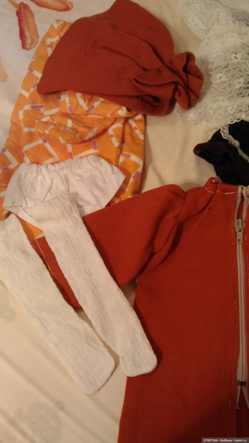 Ладно, позориться — так позориться, покажу свой колготочный опус. Не вставила эту куклу в топик из-за того, что кадр был неудачный. Вот, вырезала из общего плана (поэтому так мутно), тут виден мой полет фантазии и мастерство.