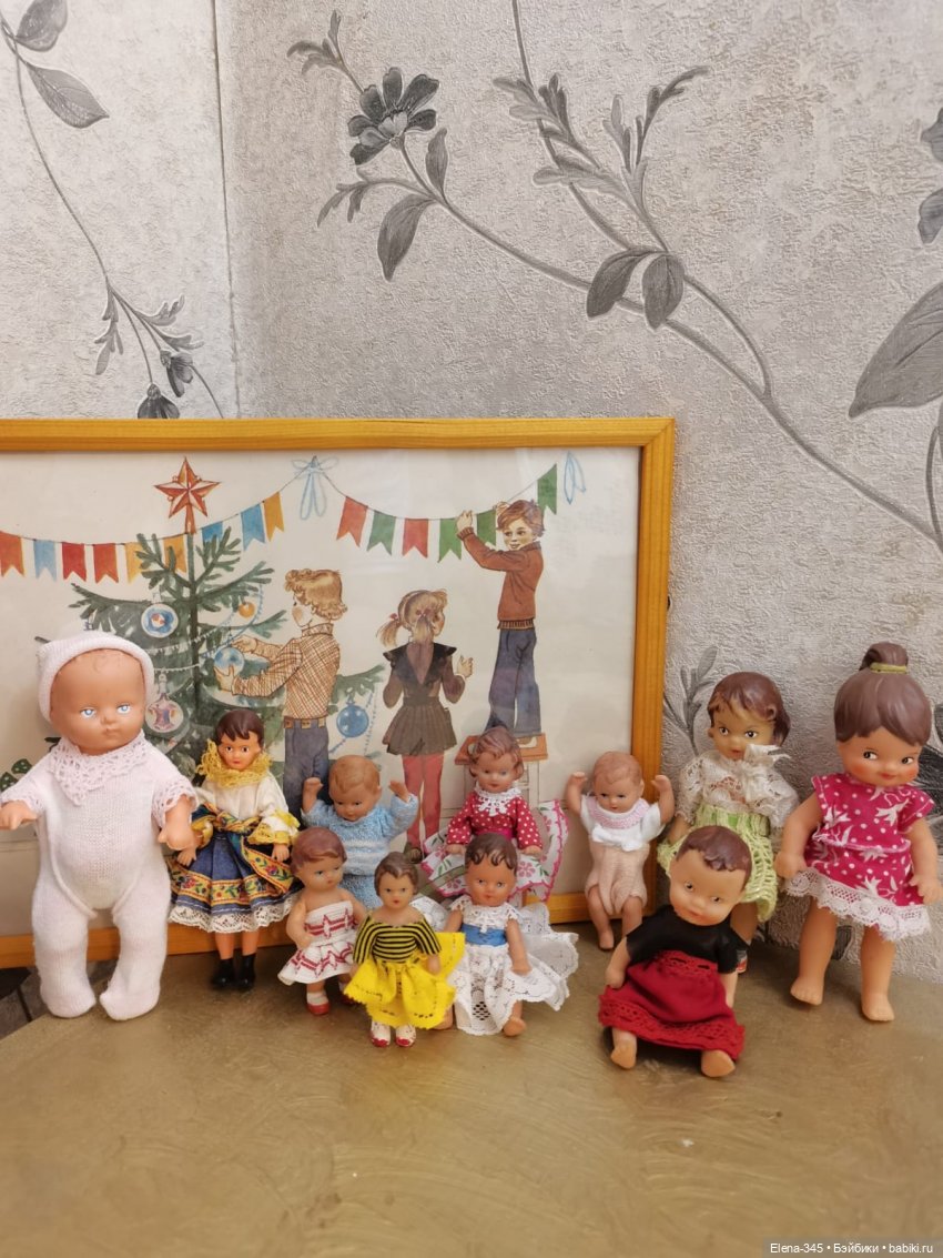 У меня в детстве были Шурик с Аленкой и рыжий Вовка, а еще кучка кьюпиков и резиновых, и пластмассовых, которые в наборе из трез продавались (светлокожая девочка с косичками, азиатик и негритенок). Еще были пеленашки и пара пластмасмовых пупсят, как на этом фото (фото стырила с Авито)