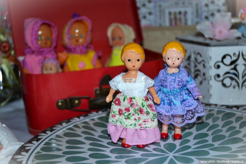 В детские годы они у меня выходили в роли папы и мамы в моем кукольном домике, носили соответственно подобающую одежду, хотя было таких кукол у меня несколько, но осталась пара, впрочем как и остальные варианты пупсов.