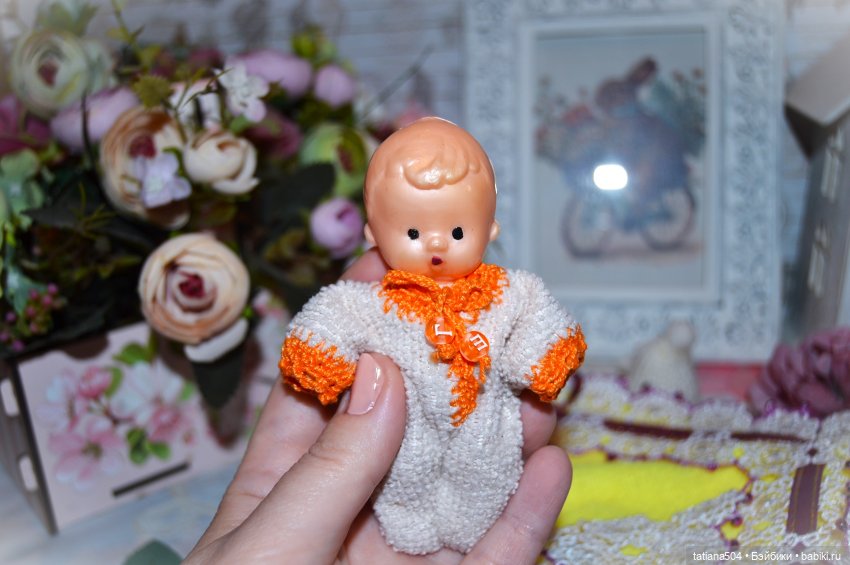 Из трех пупсов у меня сохранился один, в детстве подружки клянчили, подбивали подарить, ну словом, остался малыш один. Еще есть правда два других пупса, этого производителя.