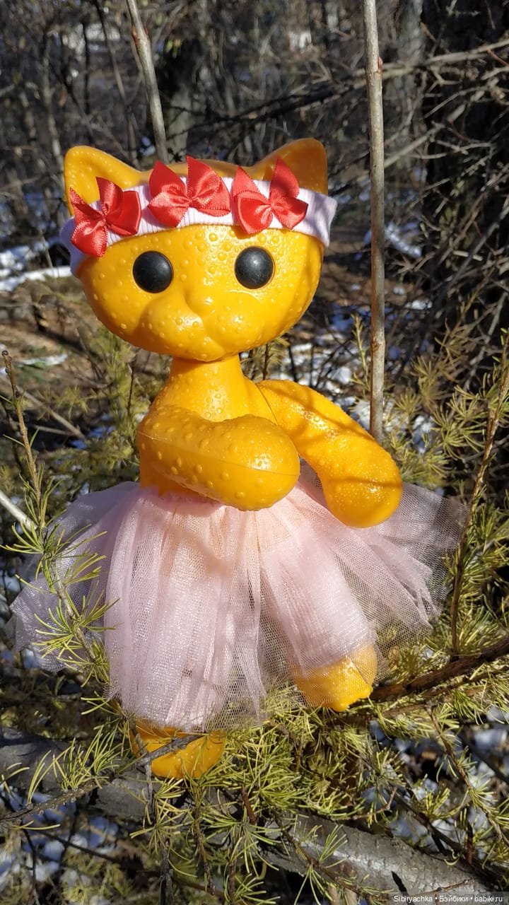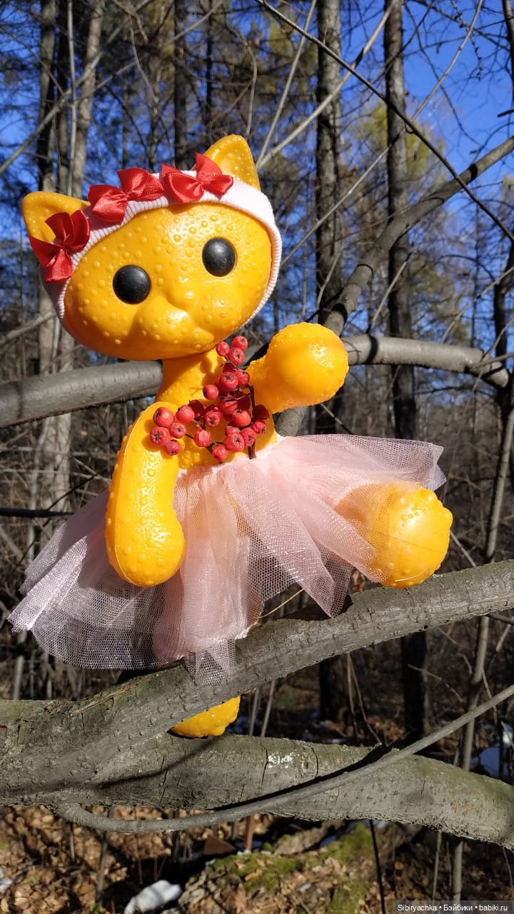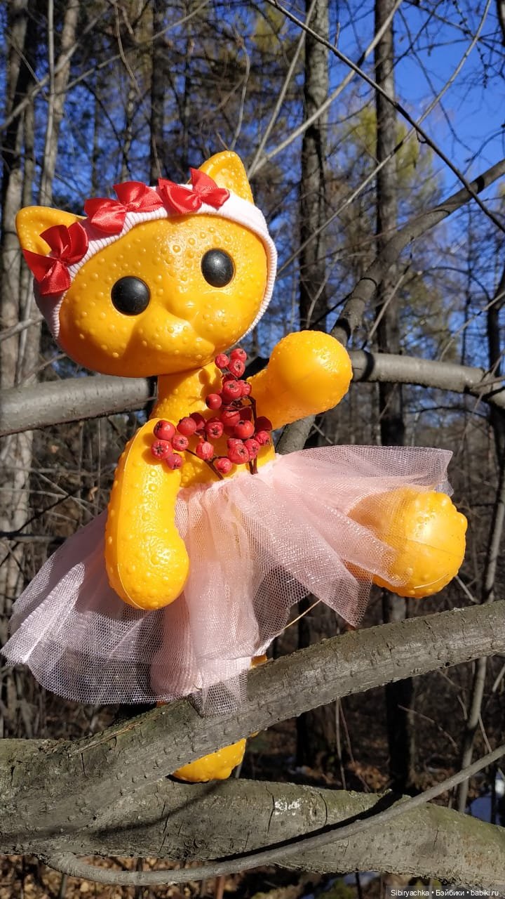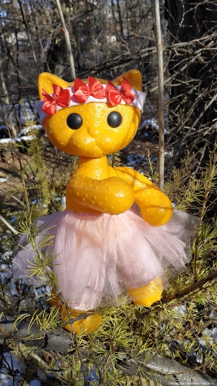 На прогулку мы отправились, когда на улице потеплело. Мурочка собралась на редкость быстро. В розовой юбочке, похожей на пачку балерины, кошечка представляет себя настоящей танцовщицей, которая будет блистать перед зрителями на сцене известного театра. Её совсем не смущало, что в роли театра у нас будут выступать лесные поляны, а я буду единственным зрителем, не считая других людей, которые будут гулять по лесу в это же время и проявят интерес к представлению. Для утепления лапок Мурочка надела розовые гетры, а на голову — розовую повязку с красными бантиками.