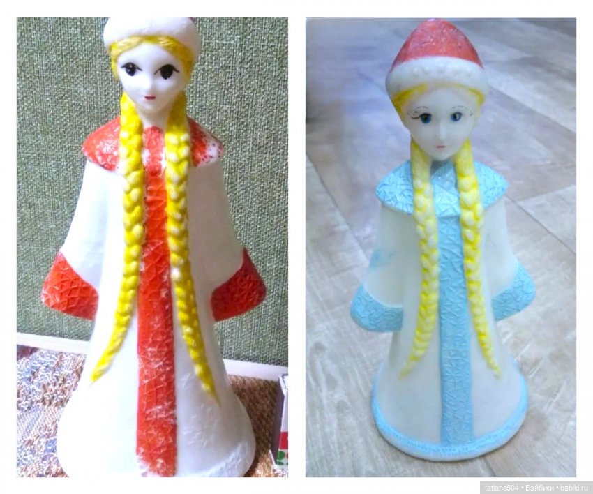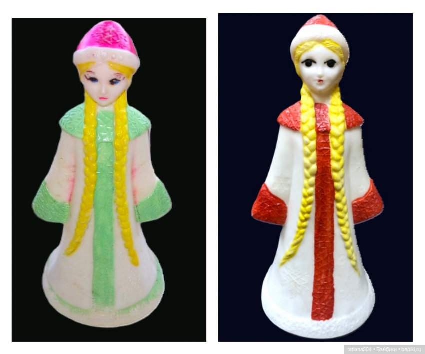 В свое время мне досталась Снегурочка с крупными черными глазками и подводкой века и на шубе была розовенькая отделка. Мне она казалась сказочно красивой!