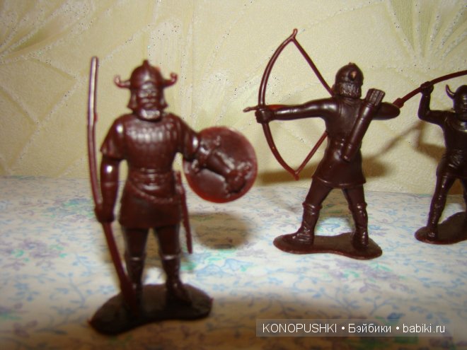 Это набор «Викинги», маленькие фигурки, с хорошей проработкой лица и костюма, очень любили с ними играть. у сестры был набор «Пираты» чёрного цвета.<img