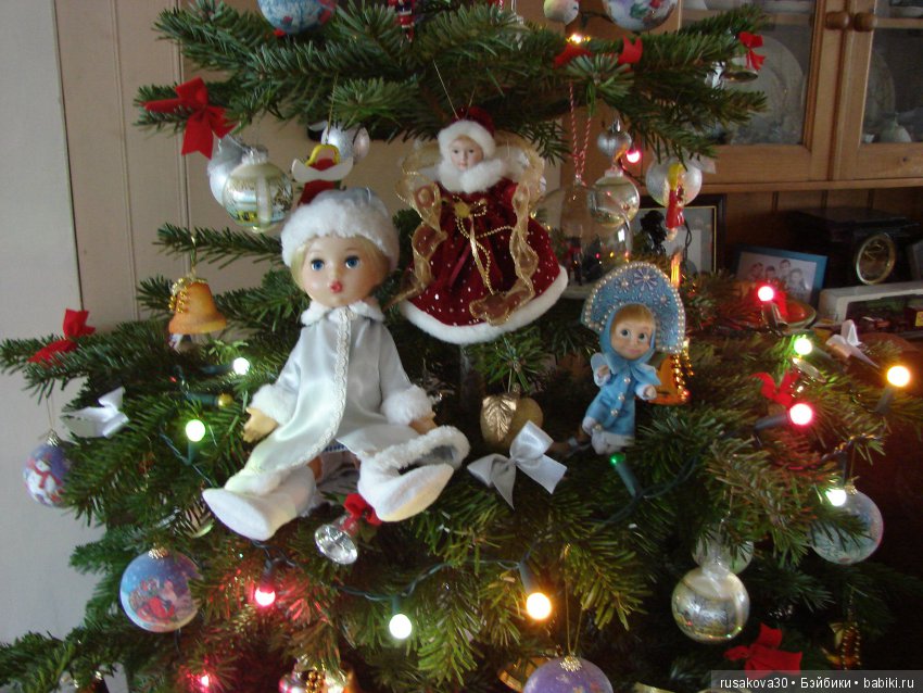 Ваши Снегурочки так прекрасно вписались в новогоднюю композицию, весело рассевшись на веточках, как птички! Спасибо за фото и настроение, улыбнуло!