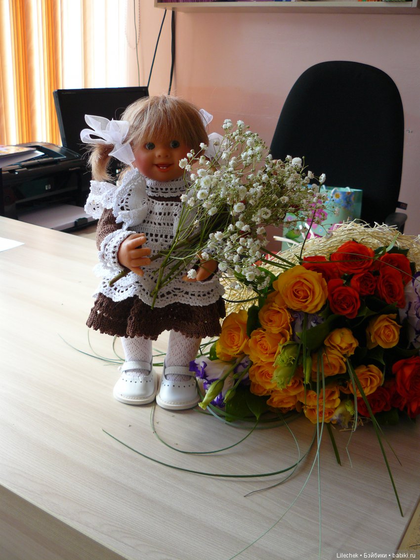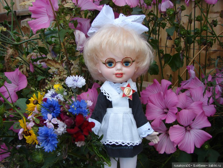 У меня тоже школьница есть.И тоже от Ленигрушки. Как купила её, она сразу увиделась мне школьницей. Сшила ей форму и носочки.