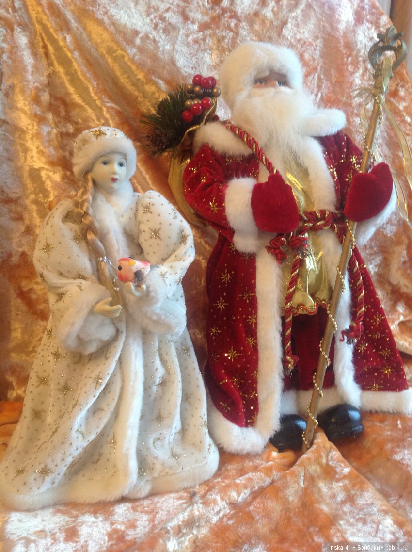На самом деле, это тоже Санты, но наряд у них уж очень похож на настоящий, как у русского Деда Мороза. Я своего тоже больше года выжидала, пока в ларьке распродажу не устроили. И Снегурочка была куплена так-же. Почти два года бедняжка пылилась в коробке на рынке. И когда стало понятно, что игрушка ни одному ребёнку на приглянулась, а коробка испачкалась и помялась, цену скинули и красавица отправилась ко мне в дом;)