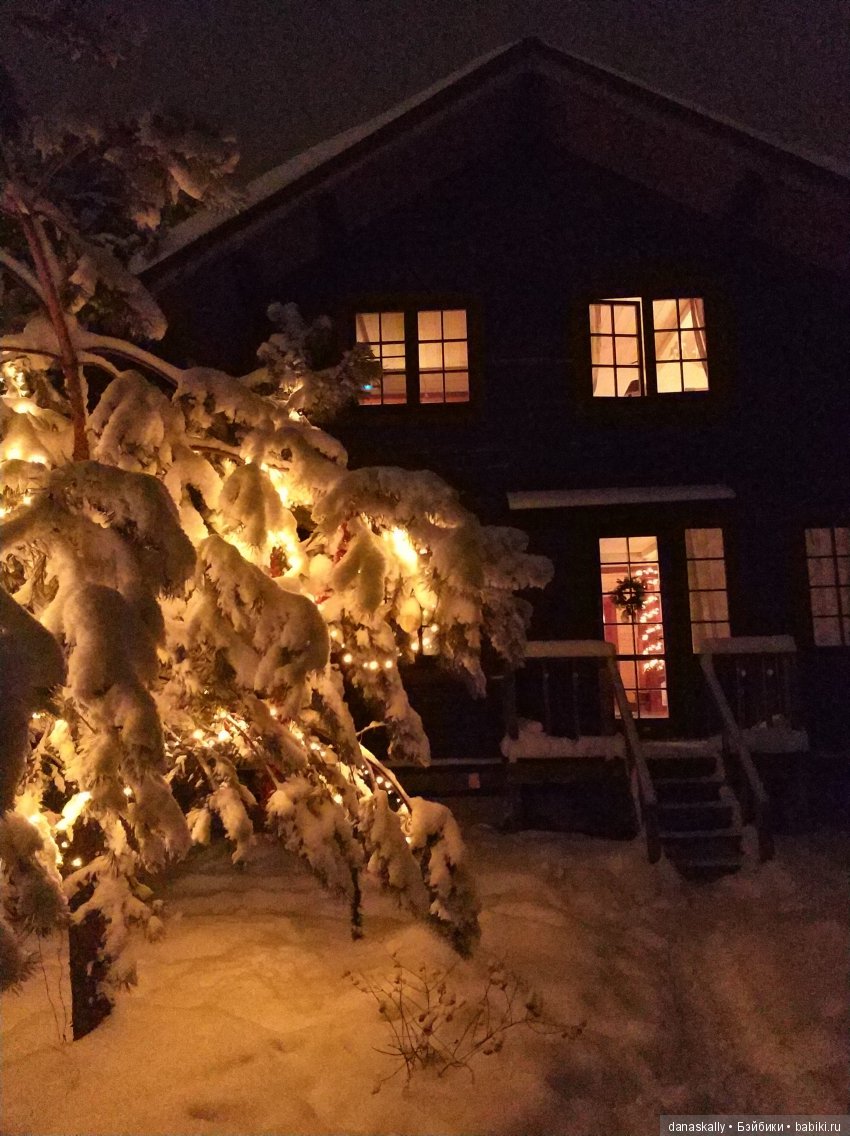 Сейчас сосну перед домом наряжаем.