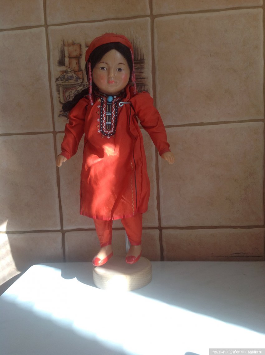 Доброго дня всем! Живёт у меня такая вот интересная игровая кукла узбечка. На мой взгляд эта куколка такая статная и красивая. Кто что думает, давайте обсудим её, она ведь этого заслуживает. Предполагаю, что это выпуск Московской фабрики сувенирных и подарочных игрушек. Начало 70х. Кто что знает интересного, поделитесь со мной знаниями. Всегда интересно узнать побольше об истории куколок.