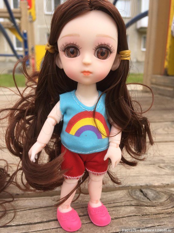 Такую шарнирку в продаже я впервые увидела. Сын заметил. Я уже долгое время посматриваю на баболинок. Но одно дело картинка, другое в руках держать. Сейчас вяжу платье для Эльзы из Холодного сердца. А малышка рядом лежит. Проблема одна — голова перевешивает